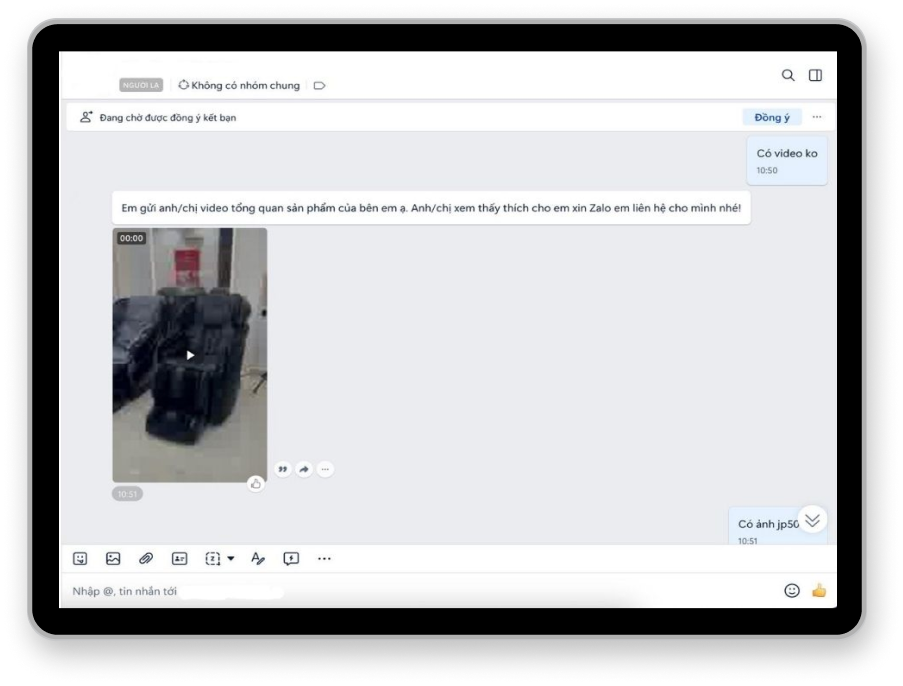 Gửi video sản phẩm trực tiếp trong khi chat