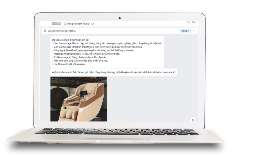 Chatbot có khả năng gửi video giới thiệu sản phẩm ngay trong khung hội thoại, giúp khách hàng dễ dàng xem cách vận hành, các tính năng nổi bật và chất lượng thực tế của từng mẫu ghế. Video được chọn tự động dựa trên nội dung tin nhắn và nhu cầu của khách. Việc bổ sung hình ảnh động và âm thanh thực tế giúp trải nghiệm tư vấn trở nên sinh động…