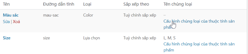 Bạn nhấp chuột vào Cấu hình chủng loại của thuộc tính sản phẩm