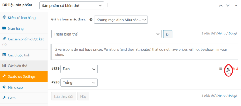 Bước 6: Thiết lập các thay đổi cho sản phẩm