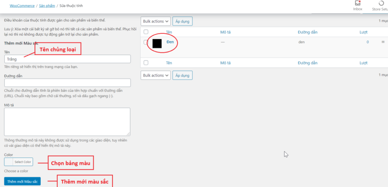 Giống như Size có chủng loại S M L thì màu sắc mình cũng nhiều chủng loại