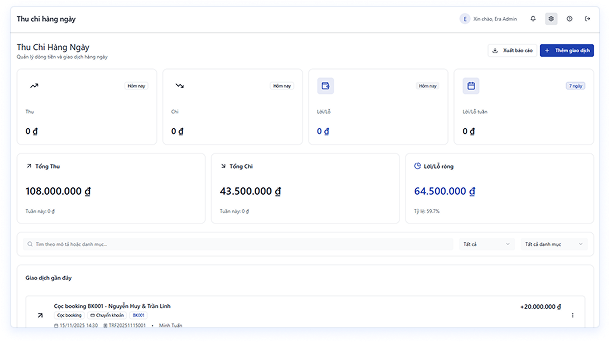 Ngay khi đăng nhập, Dashboard hiển thị các chỉ số quan trọng theo nhu cầu của từng studio, giúp bạn nhanh chóng nắm được toàn cảnh hoạt động kinh doanh. Mọi chỉ số quan trọng đều được cập nhật theo thời gian thực, giúp bạn ra quyết định nhanh và chính xác.